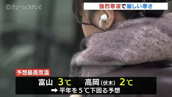 このあとも気温はあまり上がらず、日中の最高気温は富山で3℃高岡市の伏木で2℃と平年を5℃ほど下回る予想です。