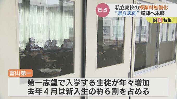 富山第一高校を第一志望として入学する生徒は年々増えていて、去年は新入生全体のおよそ6割を占めたと言います。
