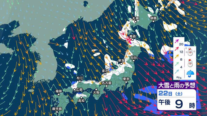 ニュースクリップ 【3連休】強い寒気は西日本まで南下…近畿北部や山陰などの日本海側 “広い範囲” で雪【雪と雨のシミュレーション】 2025年2月21日(金) 17:36 国内 天気 22日(土)雪と雨のシミュレーション