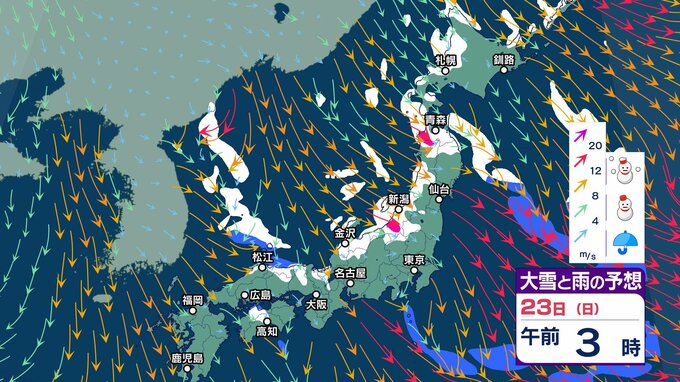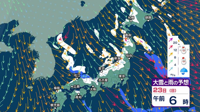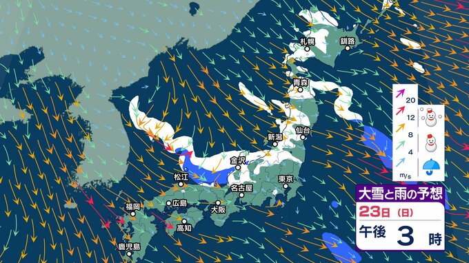 ニュースクリップ 【大雪情報】京都は普段雪の少ない南部の平地でも22日夕方にかけて大雪になる見込み 交通機関などに影響が出るおそれ【雪と雨のシミュレーション】 2025年2月22日(土) 07:45 国内 天気 23日(日)雪と雨のシミュレーション