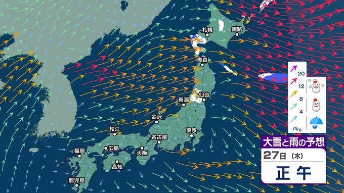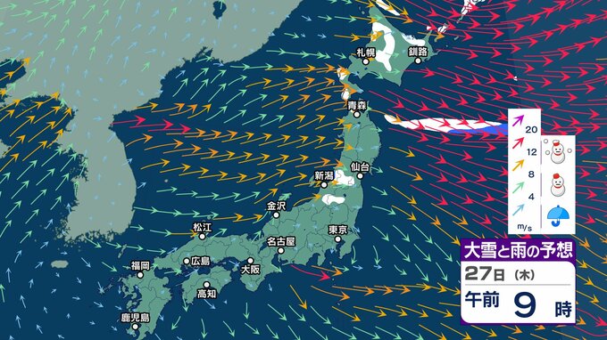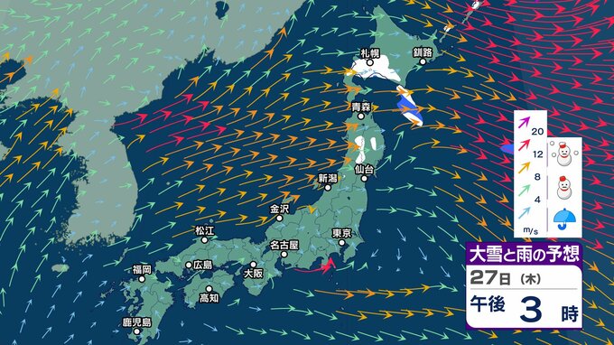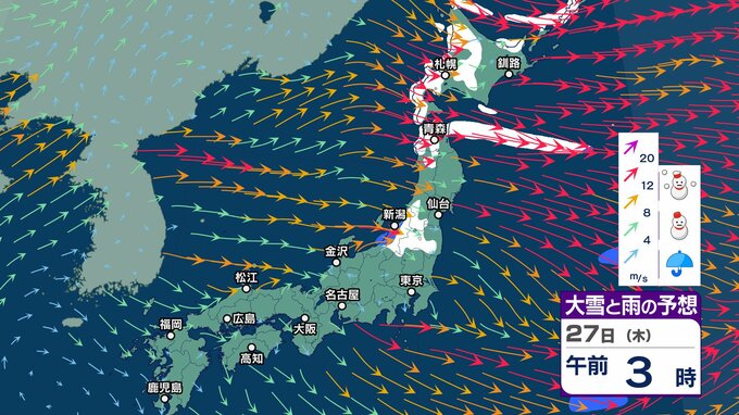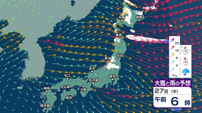 ニュースクリップ 北海道地方は3月3日以降 気温はかなり低くなる可能性 気象庁が早期天候情報【雪と雨と風のシミュレーション】 2025年2月25日(火) 16:50 国内 天気 27日(木)雪と雨と風のシミュレーション