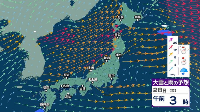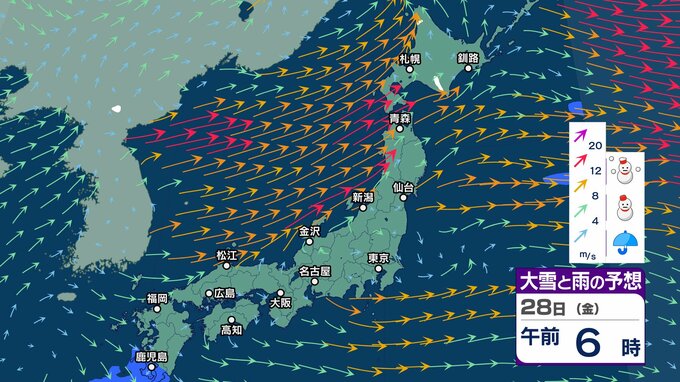 ニュースクリップ 北海道地方は3月3日以降 気温はかなり低くなる可能性 気象庁が早期天候情報【雪と雨と風のシミュレーション】 2025年2月25日(火) 16:50 国内 天気 28日(金)雪と雨と風のシミュレーション