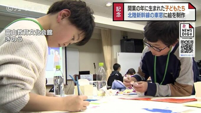 2025年3月に北陸新幹線・金沢~長野間の開業から10年を迎えます。3月16日にJR西日本が運行する特別列車に子どもたちがつくったアートが飾られることになり、24日富山市内でアート制作が行われました。
