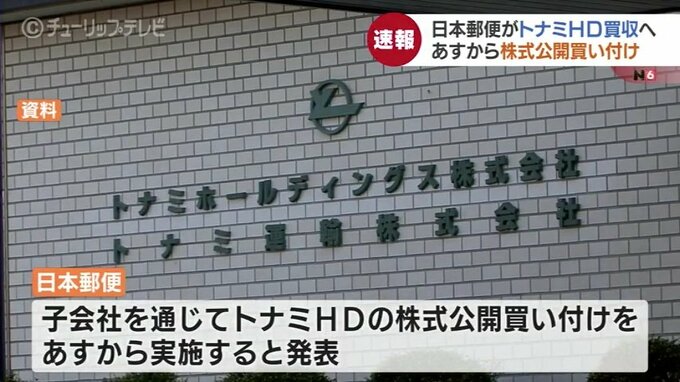 日本郵便がトナミホールディングス(HD)を買収する方針です。27日から株式の公開買い付けを実施すると発表しました。