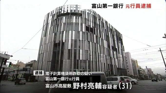 電子計算機使用詐欺の疑いで逮捕されたのは、富山第一銀行の元行員野村亮輔容疑者(31)です。