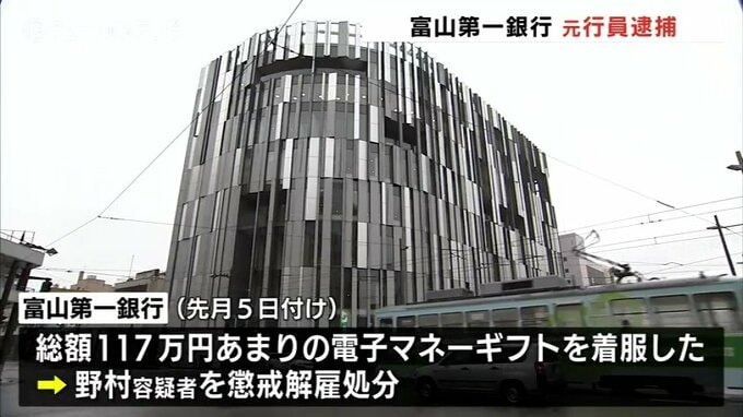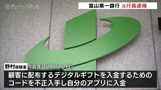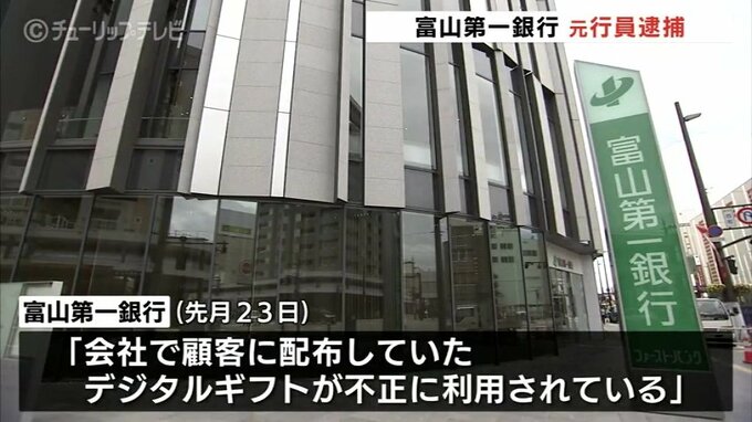 富山第一銀行の元行員が、顧客に配布していたデジタルギフトを不正に利用し、合計約4000円相当を着服していたことがわかり、26日までに逮捕されました。