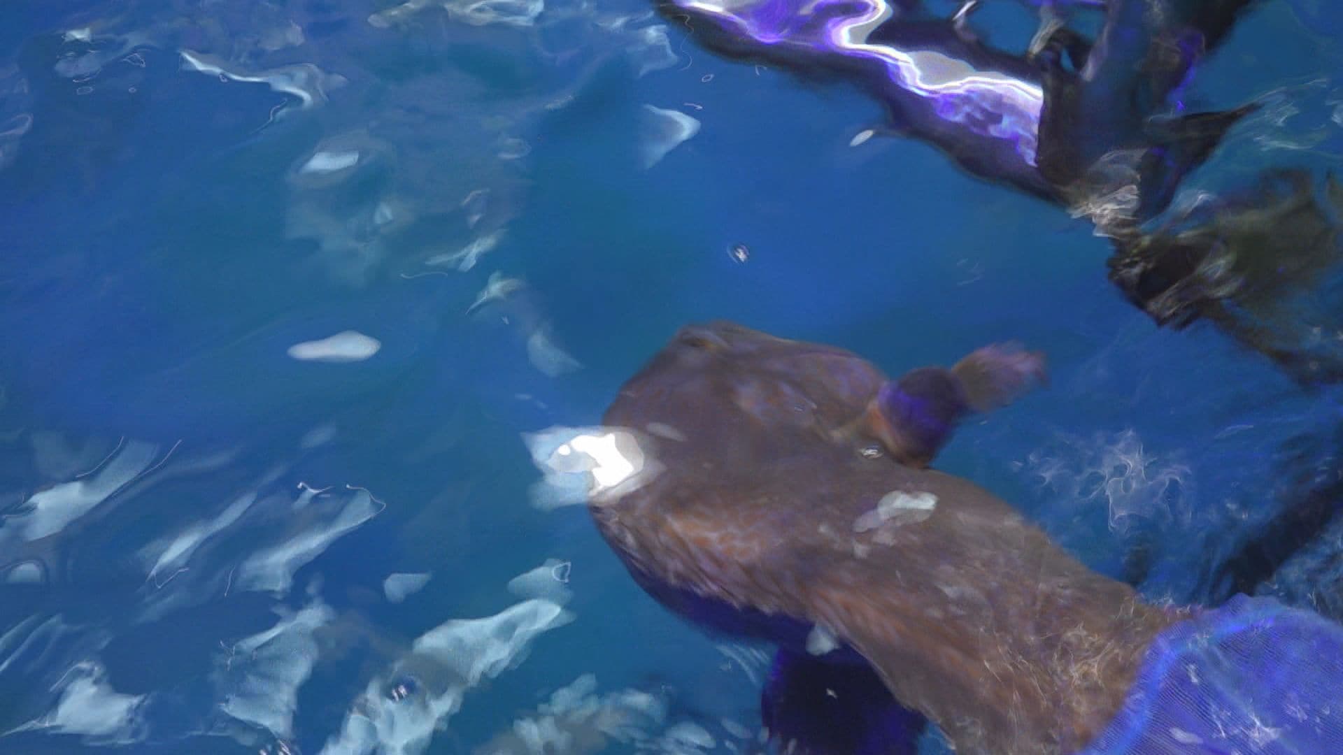 1日の午前には、キジハタとヒラスズキあわせて5匹が、丁寧に水槽に入れられました。
