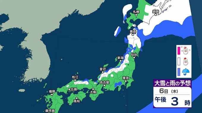 ニュースクリップ 寒冷前線の影響で朝から雨 最大瞬間風速 19.8メートル観測 富山県内は広い範囲に強風注意報【雪と雨のシミュレーション】 2025年3月3日(月) 12:14 国内 天気 6日(木)雪と雨のシミュレーション