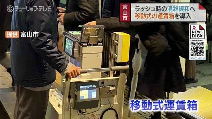 ニュースクリップ 移動式の運賃箱を導入 精算窓口が2か所に 朝ラッシュ時の混雑緩和へ 富山駅の路面電車停留場 2025年3月3日(月) 20:29 国内 朝のラッシュ時の混雑緩和へ、移動式の運賃箱を導入です。富山市は3日から富山駅の路面電車停留場に移動式の運賃箱を導入しました。車両前方にある「降車用」の扉に加え、車両中央部の「乗車用」の扉の外に運賃箱…