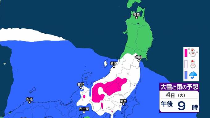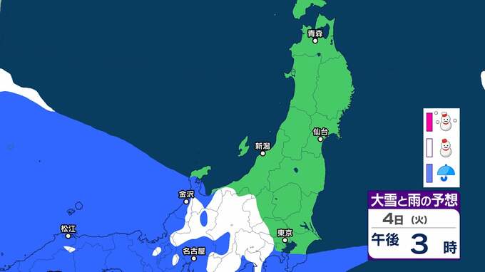 ニュースクリップ 【大雪情報】東北太平洋側は大雪に…警報級の大雪となる可能性も 5日朝まで30センチ 6日朝まで40センチの降雪予想【雪と雨のシミュレーション】大雪による交通障害、屋根からの落雪、建物や農業施設への被害に注意・警戒を 2025年3月4日(火) 10:00 国内 天気 4日(火)雪と雨のシミュレーション