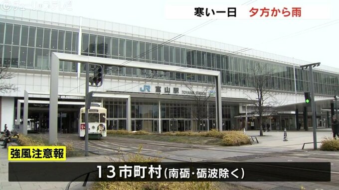 富山地方気象台は高岡市など13の市町村に強風注意報を出し夜のはじめごろまで注意を呼びかけています。