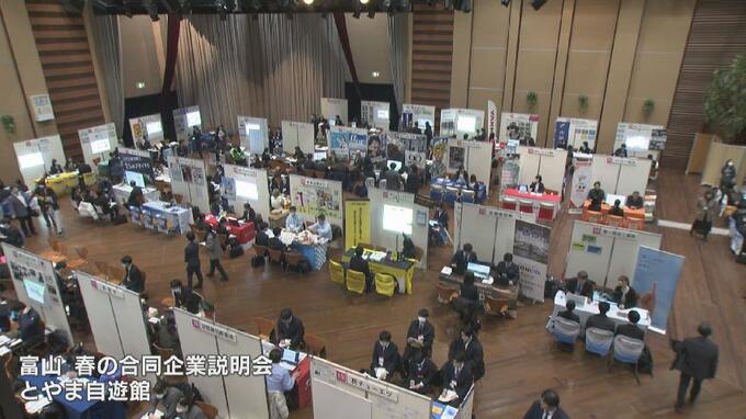 富山市など5つの市町村が共同で開催している合同企業説明会。ことしは製造業や建設業、金融業、サービス業など県内企業130社が参加しました。