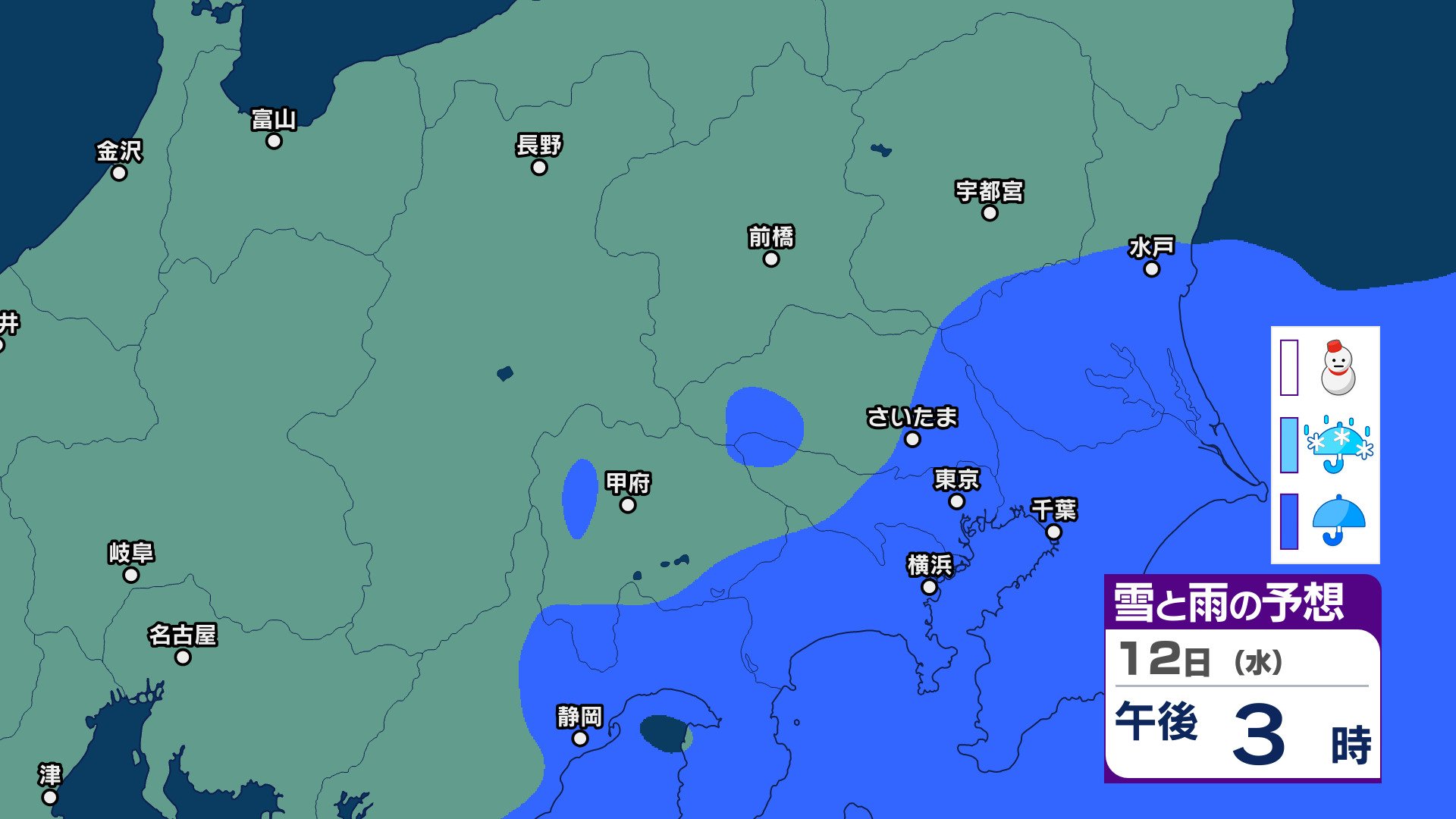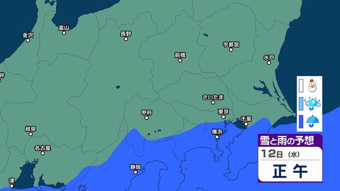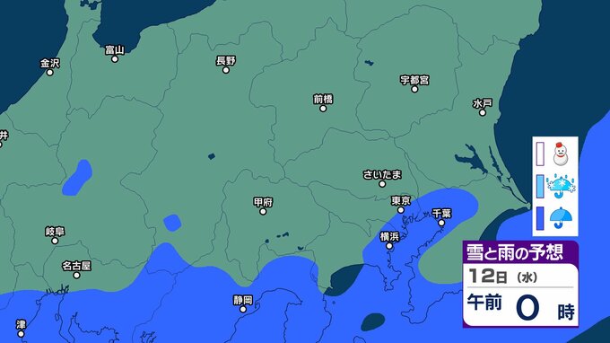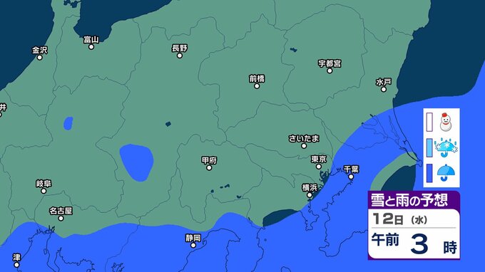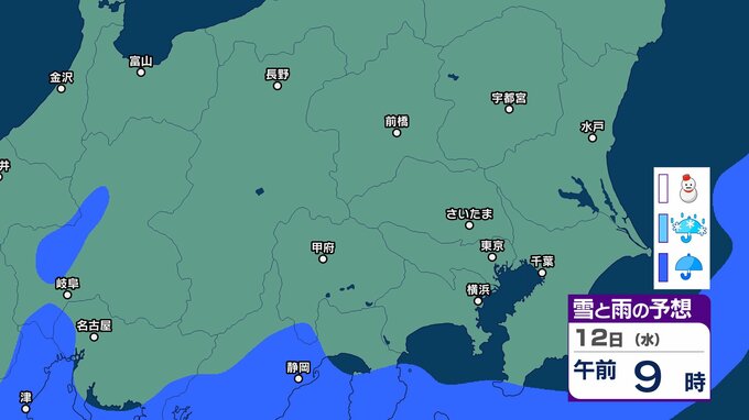 ニュースクリップ 【大雪情報】関東甲信 9日明け方にかけて山沿いや山地は大雪 上空に氷点下3℃の寒気…最大で降雪 10センチ予測【雪と雨のシミュレーション】積雪や路面凍結による交通障害に警戒 架線や電線、樹木への着雪に注意 2025年3月8日(土) 11:55 国内 天気 12日(水)雪と雨のシミュレーション