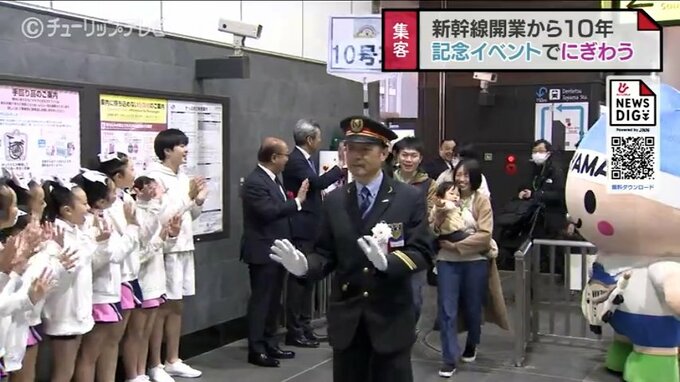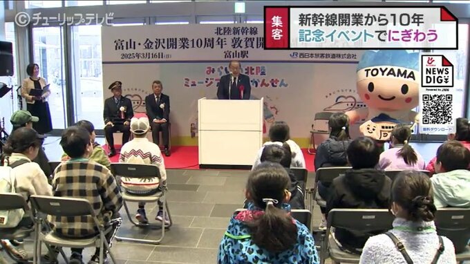 富山県内の各新幹線駅は北陸新幹線の開業10周年と敦賀開業1周年を祝う式典が行われました。