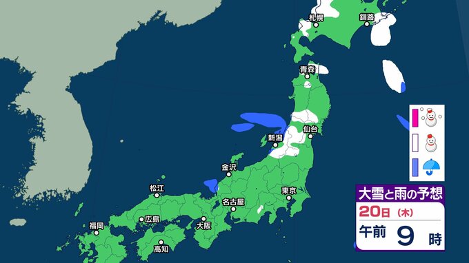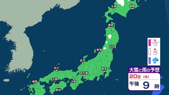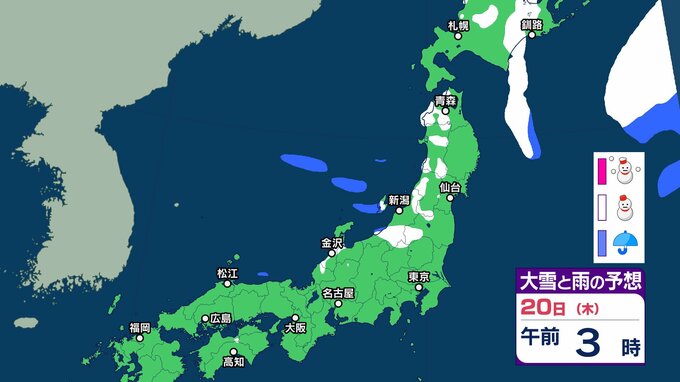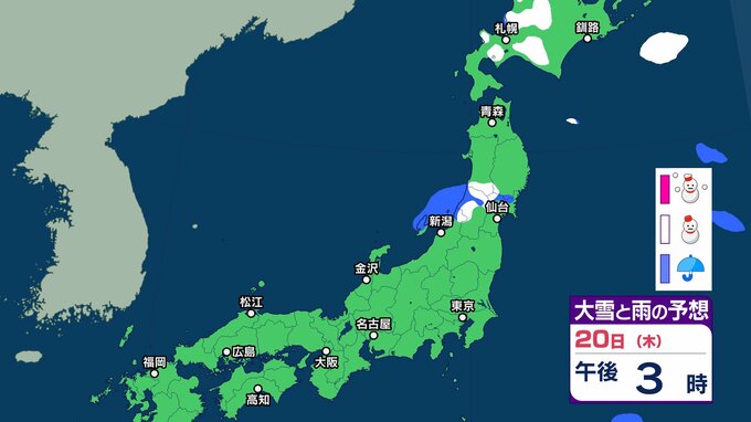 ニュースクリップ 【ダブル低気圧】発達しながら西日本に進み 別の低気圧が本州南岸を東北東へ【雪と雨のシミュレーション】この時期としては強い寒気 “嵐の使者” 大気の状態不安定で暴風に警戒 2025年3月18日(火) 07:52 国内 天気 20日(木・祝)雪と雨のシミュレーション