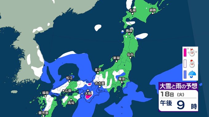 ニュースクリップ 【ダブル低気圧】東海地方の上空5500メートルに氷点下33℃以下の強い寒気 “嵐の使者” 大気の状態が不安定 竜巻などの激しい突風、落雷、降ひょう、急な強い雨に注意【雪と雨のシミュレーション】 2025年3月18日(火) 17:07 国内 天気 18日(火)雪と雨のシミュレーション
