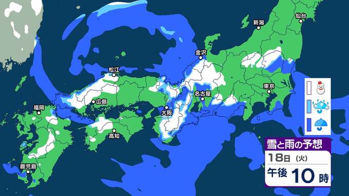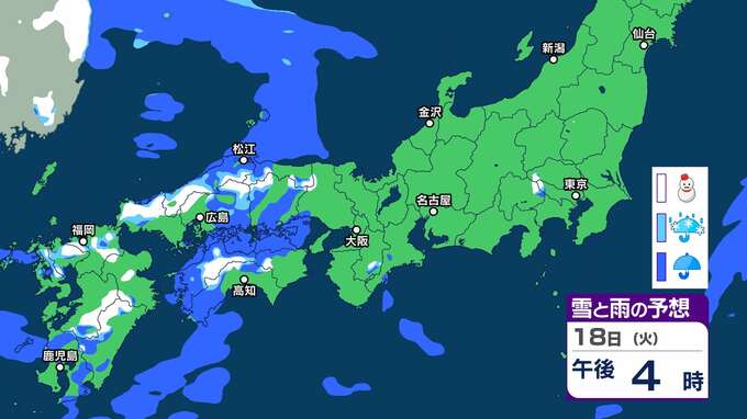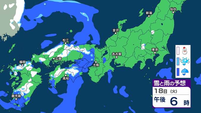【また雪?】西日本では19日にかけて東日本と北日本では19日は暴風や暴風雪に警戒 上空約5500メートルに氷点下36度以下のこの時期としては強い寒気が流れ込む【雪と雨シミュレーション】 2025年3月18日(火) 17:37 国内 暮らし・マネー 18日(火)雪と雨のシミュレーション