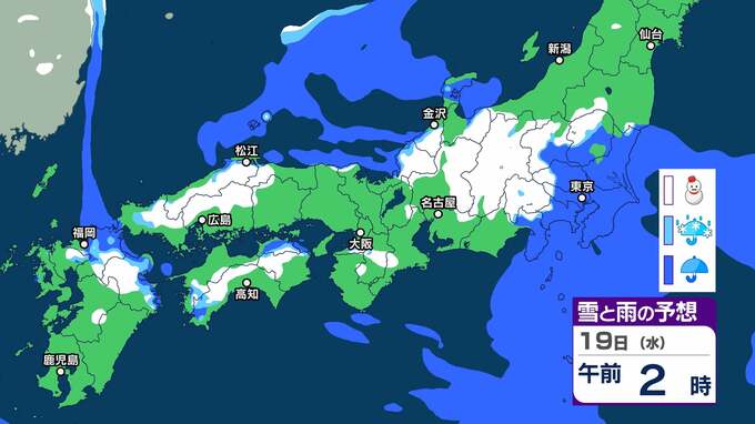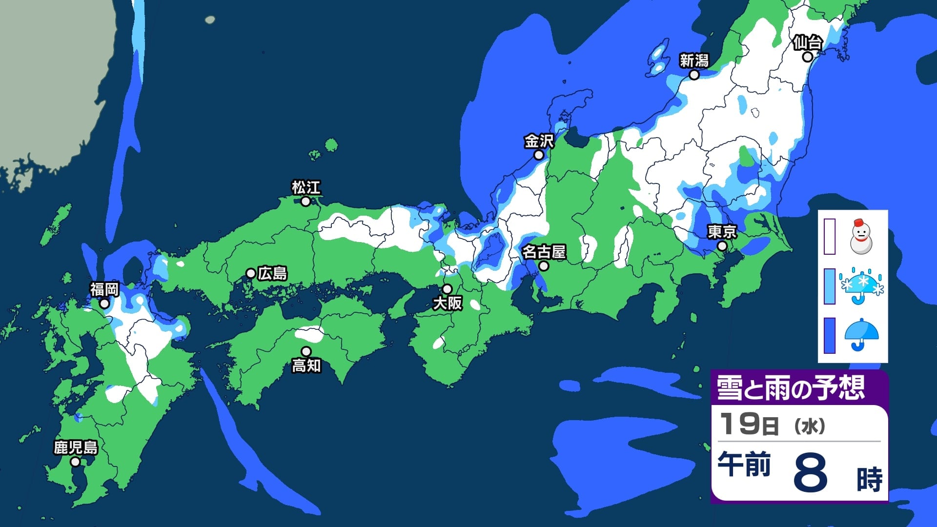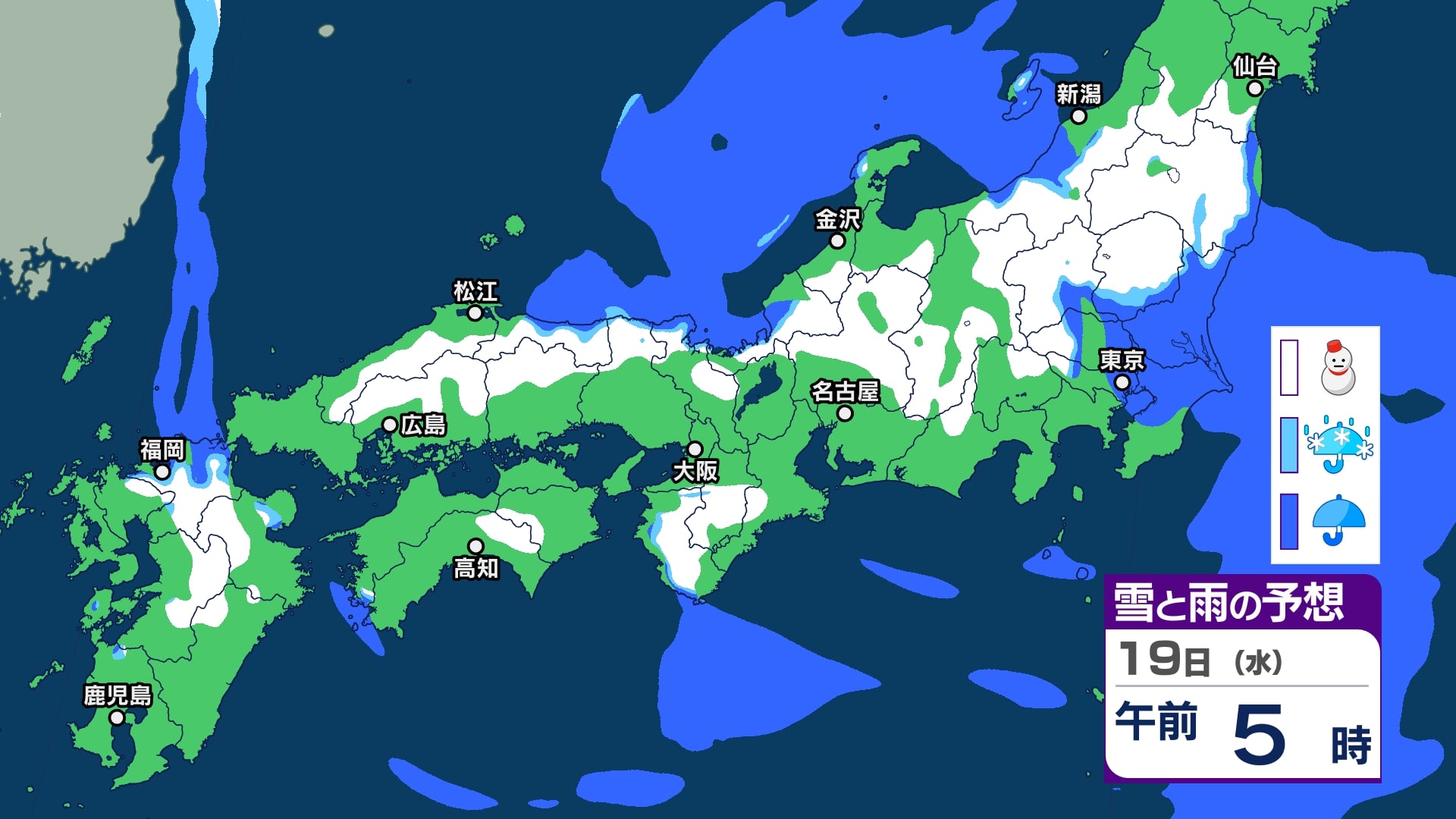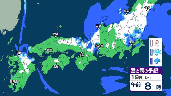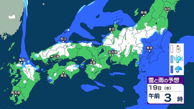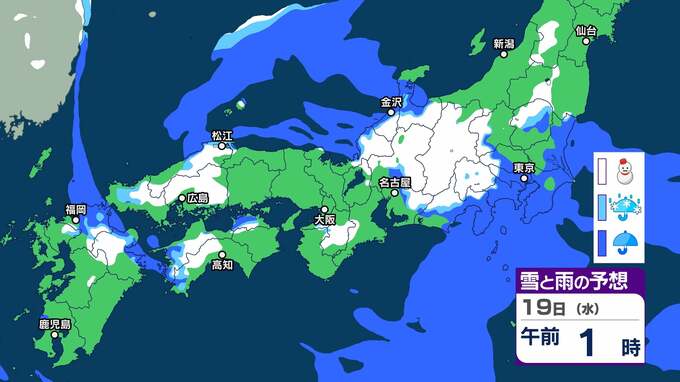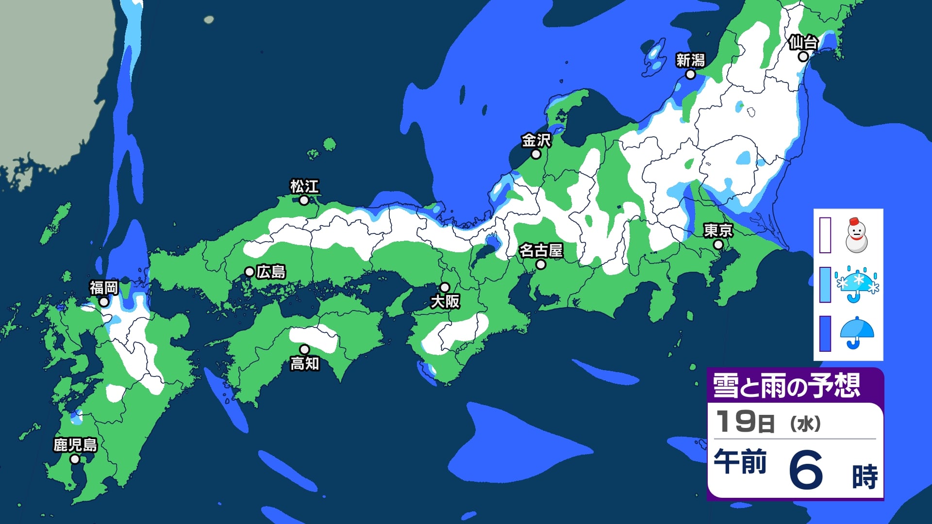 【また雪?】西日本では19日にかけて東日本と北日本では19日は暴風や暴風雪に警戒 上空約5500メートルに氷点下36度以下のこの時期としては強い寒気が流れ込む【雪と雨シミュレーション】 2025年3月18日(火) 17:37 国内 暮らし・マネー 19日(水)雪と雨のシミュ―レーション