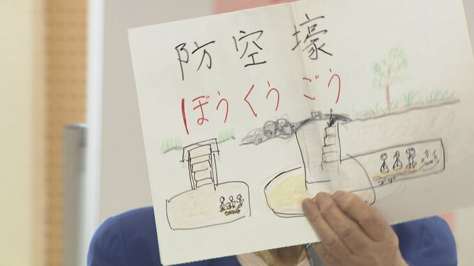未明に空襲警報が鳴り、父親と妹と防空壕に隠れた後、街なかに降り注ぐ焼夷弾の熱さから逃れるため神通川へ避難したことなどを話しました。
