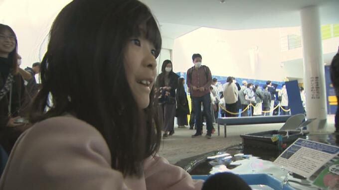 また、館内にはホタルイカを直接触れるコーナーがあり、子どもたちは見て、触れて、ホタルイカの生態を学んでいました。