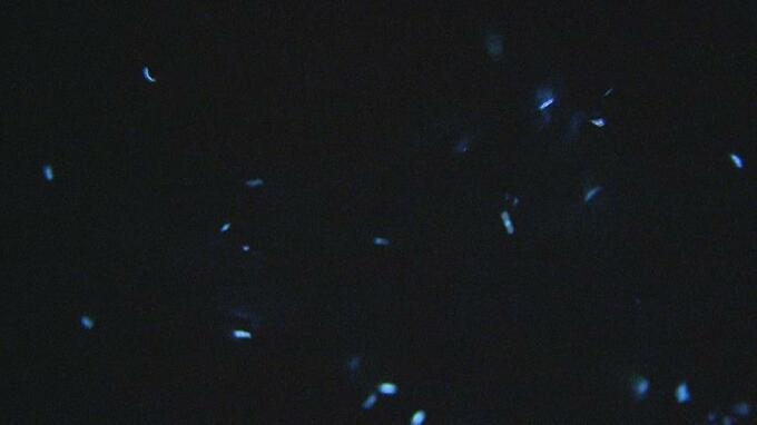 滑川市のほたるいかミュージアムで12日から始まった、この時期限定の人気イベント「ほたるいか発光ショー」。