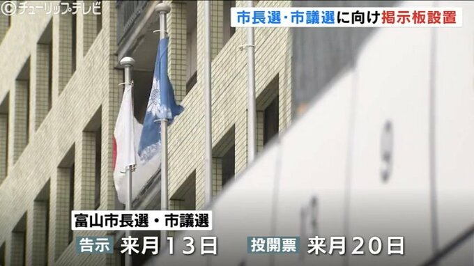 4月13日告示の富山市長選と市議会議員選挙に向け立候補者のポスターを貼る掲示板の設置が21日から始まりました。