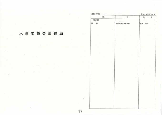 ニュースクリップ 富山県 職員人事2025【異動一覧】女性管理職 21.3パーセント(去年比1.1ポイント増)…観光推進局の新設で大規模な組織改編 去年より約200件多い2151件の異動(2025年4月1日発令) 2025年3月24日(月) 17:34 国内 暮らし・マネー 人事委員会事務局 監査委員事務局 富山県職員異動一覧2025