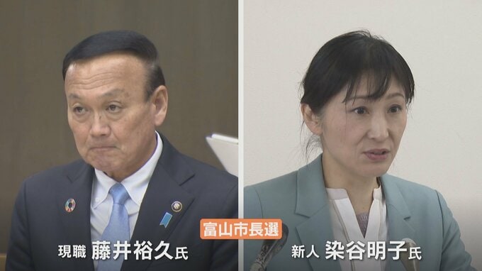 一方、富山市長選にはこれまでに現職の藤井裕久氏と新人の染谷明子氏の2人が立候補を表明し、選挙戦となる公算です。