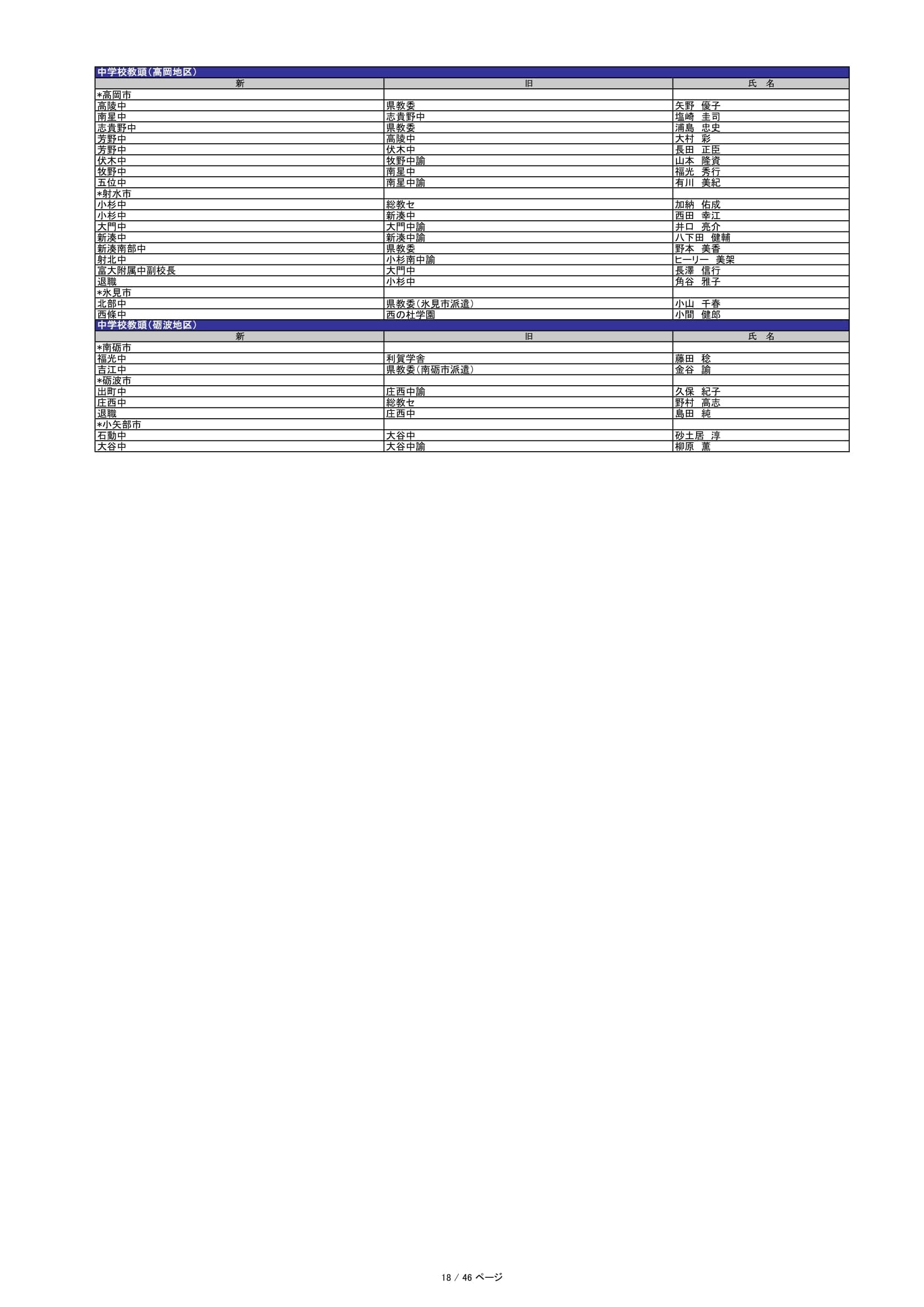 藤塚卓己=県教委(富山市派遣)➡藤ノ木中