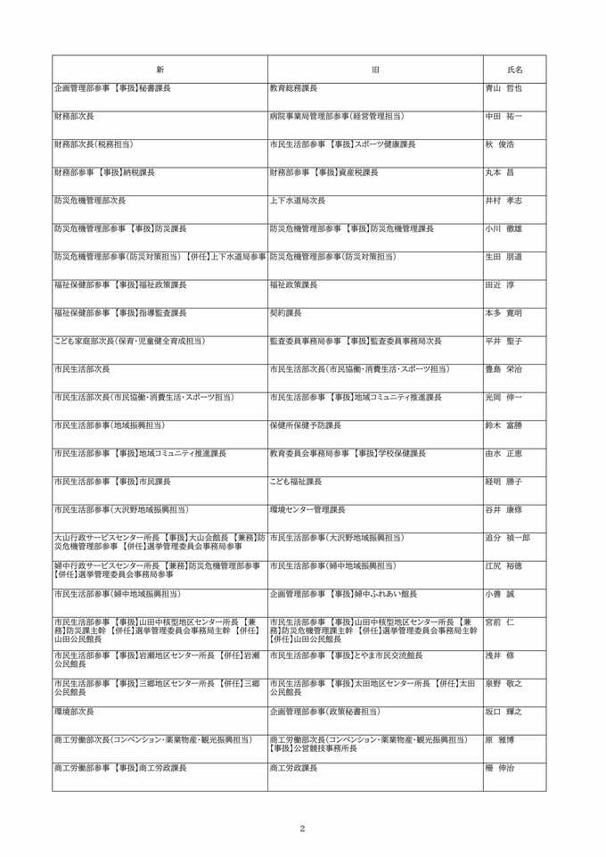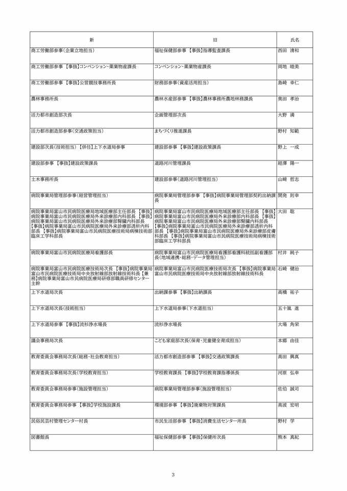ニュースクリップ 富山市職員 人事異動 2025【名簿一覧】4月1日発令 課長級以上の女性比率 20パーセント【部長級 写真】 2025年3月25日(火) 13:17 国内 富山市 部次長級 職員人事異動 2025