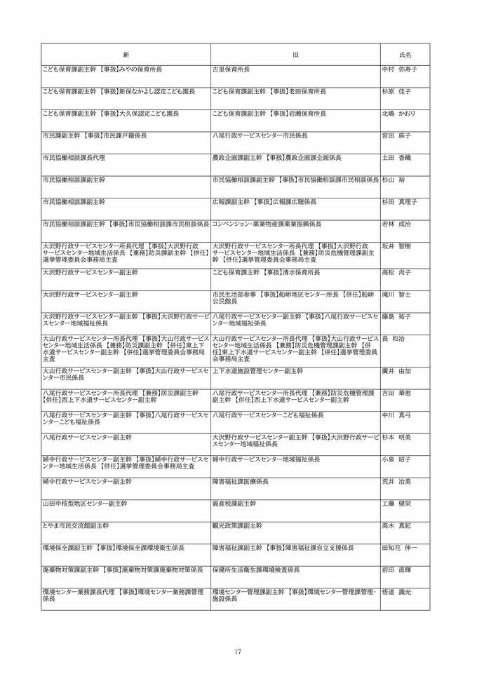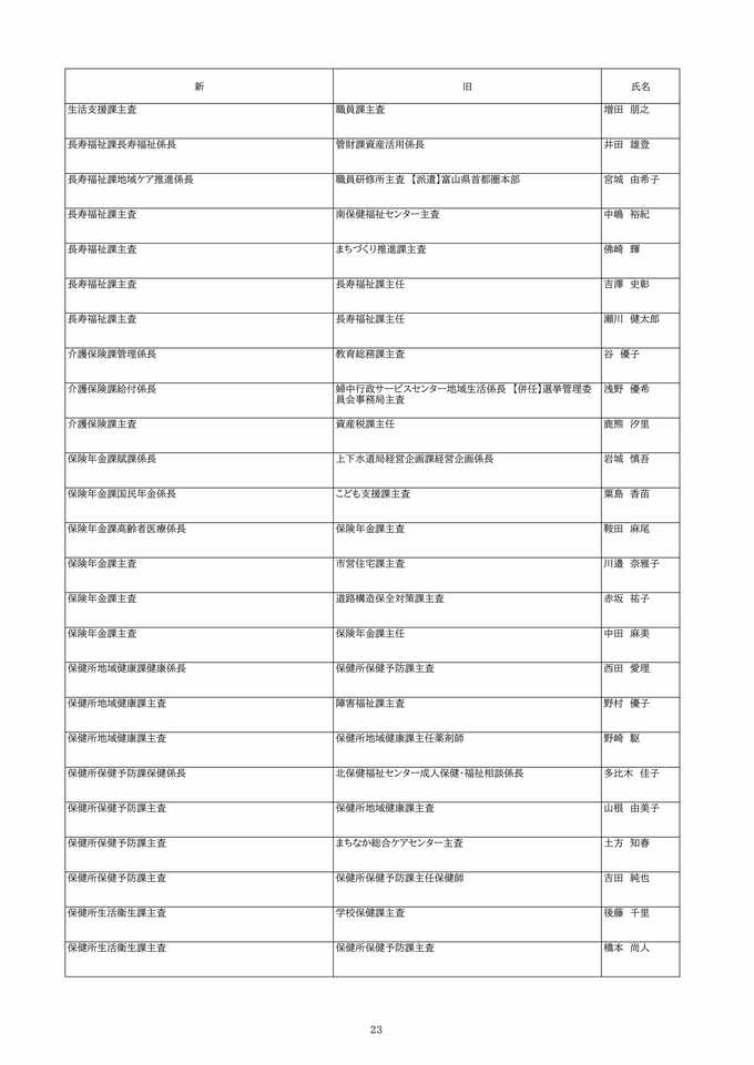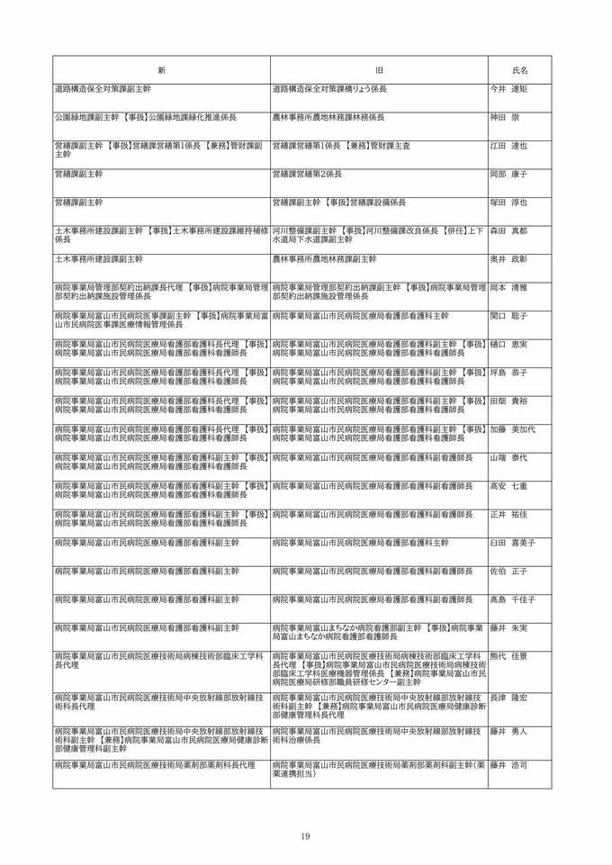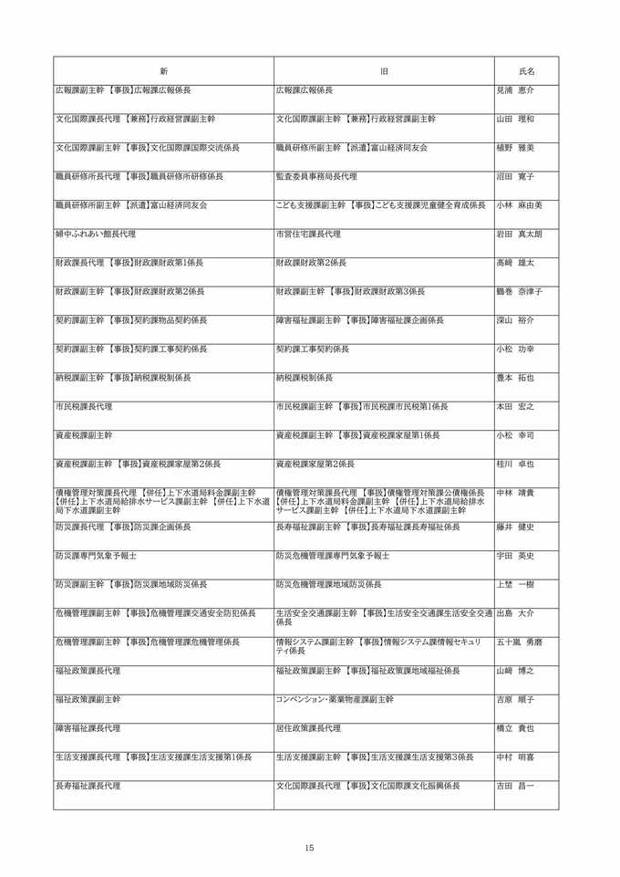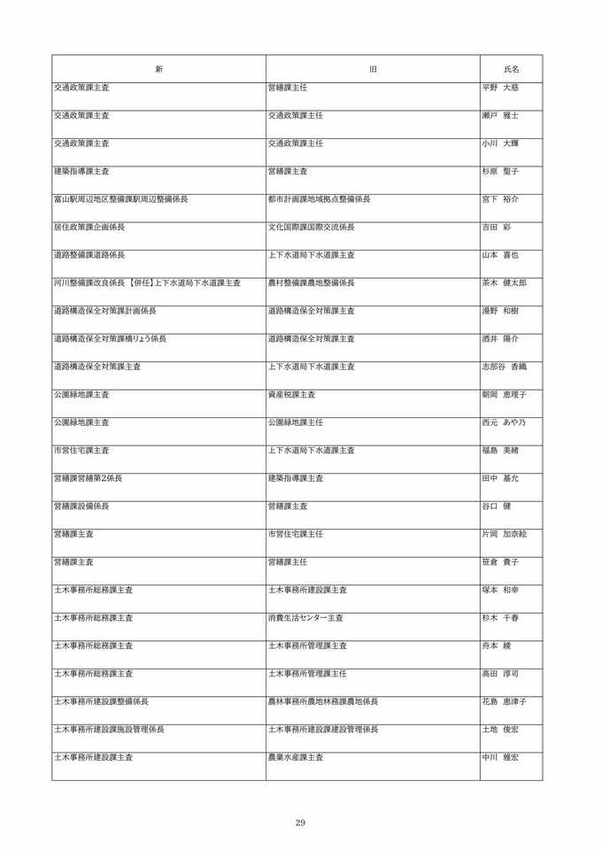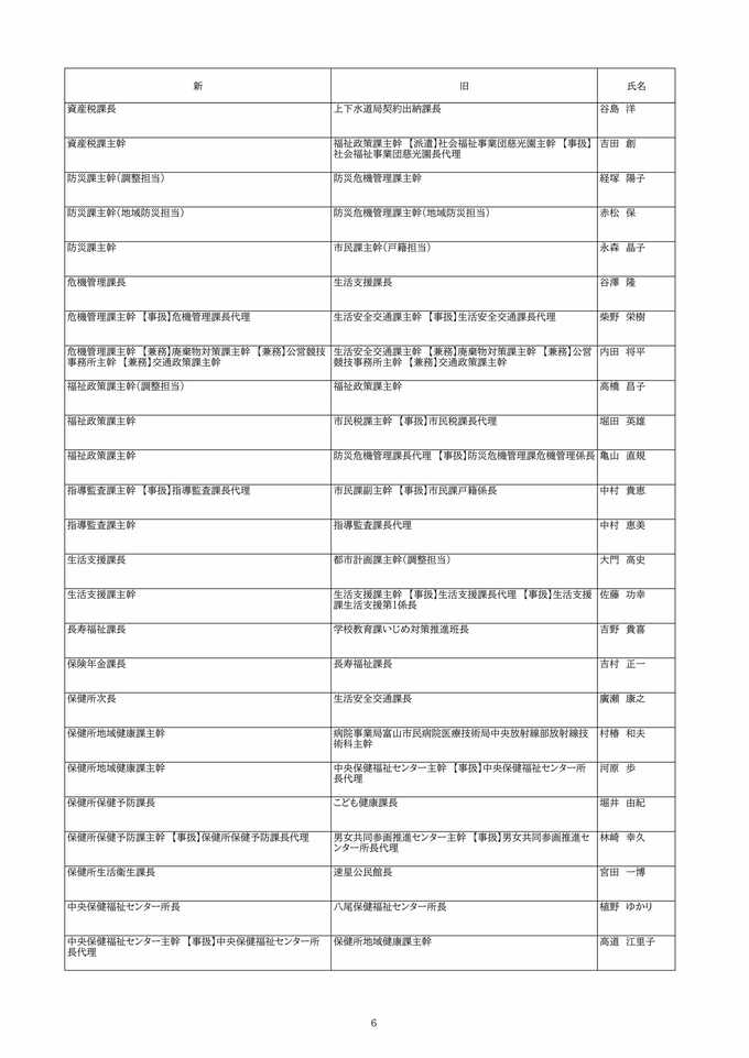 ニュースクリップ 富山市職員 人事異動 2025【名簿一覧】4月1日発令 課長級以上の女性比率 20パーセント【部長級 写真】 2025年3月25日(火) 13:17 国内 富山市職員人事異動 係長~課長級 2025