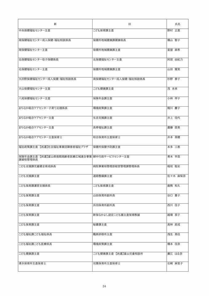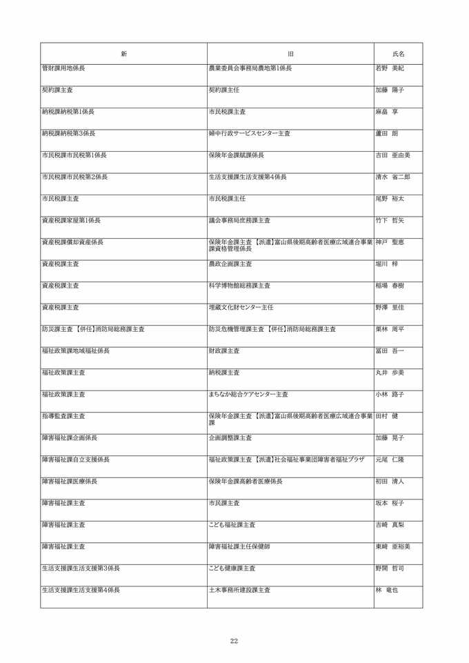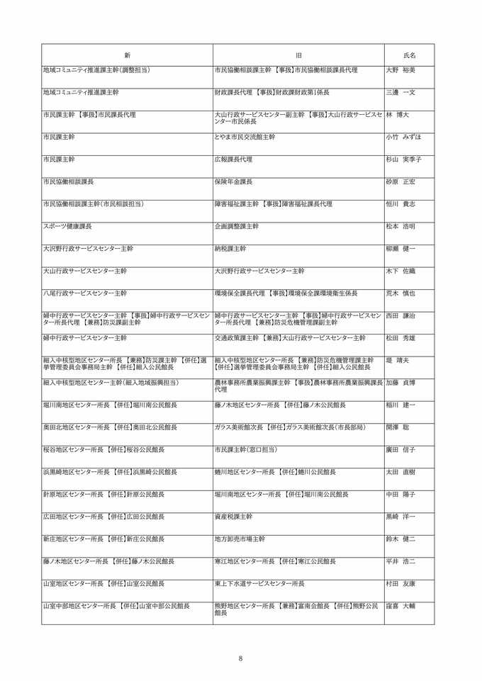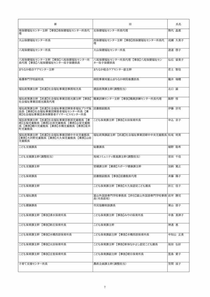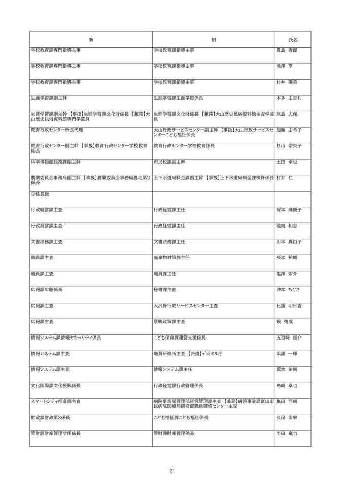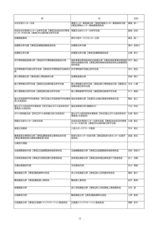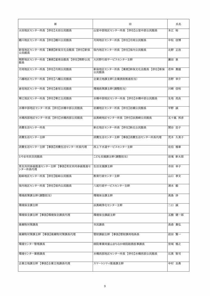 ニュースクリップ 富山市職員 人事異動 2025【名簿一覧】4月1日発令 課長級以上の女性比率 20パーセント【部長級 写真】 2025年3月25日(火) 13:17 国内 富山市職員人事異動 係長~課長級 2025