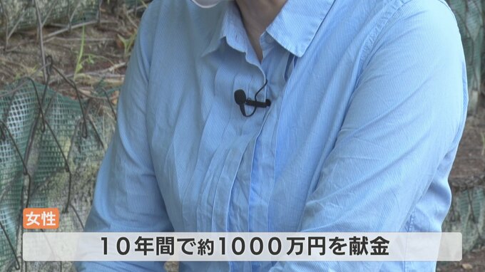 10年間で1000万円近く献金したという女性。生命保険は解約、カードローンを組んで借金を重ね、家庭は崩壊したと言います。