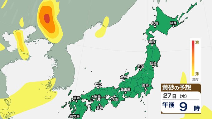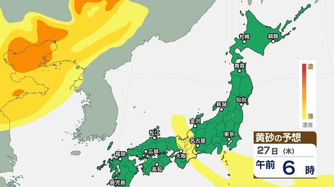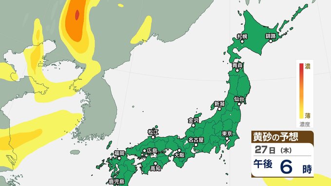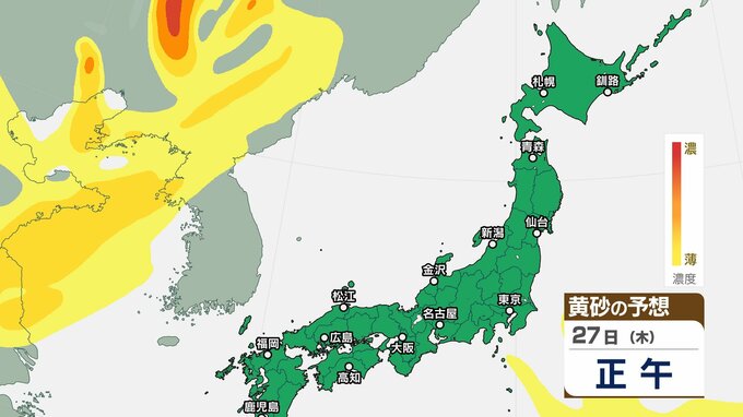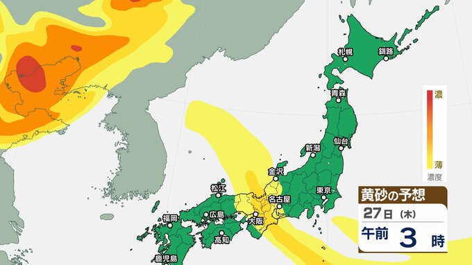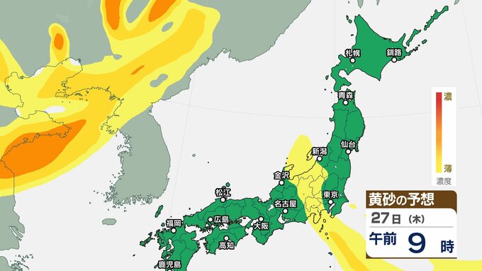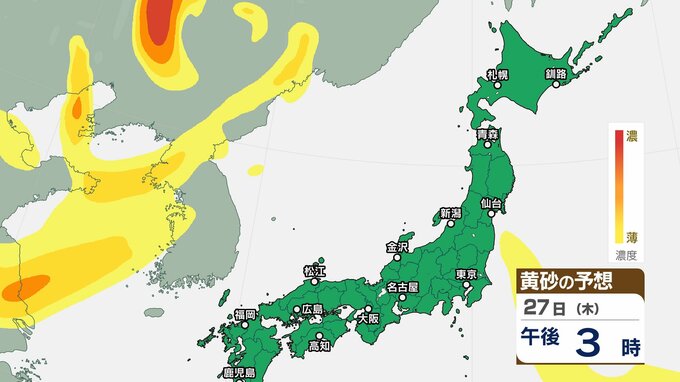 ニュースクリップ 【黄砂情報】衛星画像も茶色に?26日27日の日中まで飛来か…黄砂のあとは雨に注意!洗車の前に水で流して【黄砂シミュレーション】 2025年3月26日(水) 06:54 国内 暮らし・マネー 27日(木)黄砂のシミュレーション