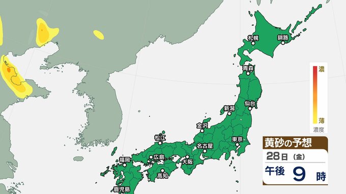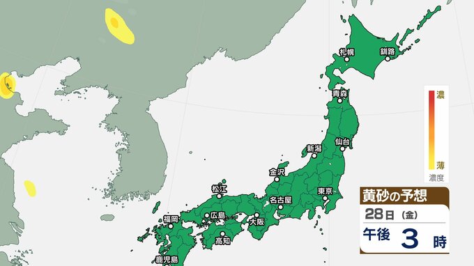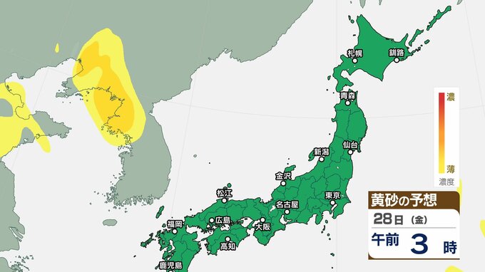 ニュースクリップ 【黄砂情報】衛星画像も茶色に?26日27日の日中まで飛来か…黄砂のあとは雨に注意!洗車の前に水で流して【黄砂シミュレーション】 2025年3月26日(水) 06:54 国内 暮らし・マネー 28日(金)黄砂のシミュレーション