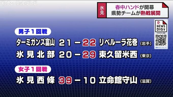また、氷見北部男子は東京都の東久留米西に20対29で敗れました。