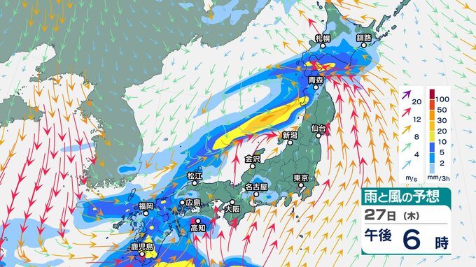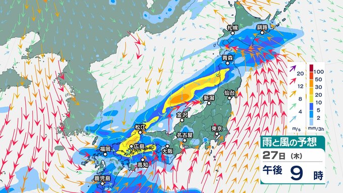 ニュースクリップ 【フェーン現象】南からの暖かい空気に注意 金沢、富山で25℃以上の夏日【風と雨のシミュレーション】北陸は軒並み気温上昇、積雪地はなだれ、雪解けによる土砂災害などに注意 2025年3月27日(木) 10:39 国内 暮らし・マネー 27日(木)雨と風のシミュレーション