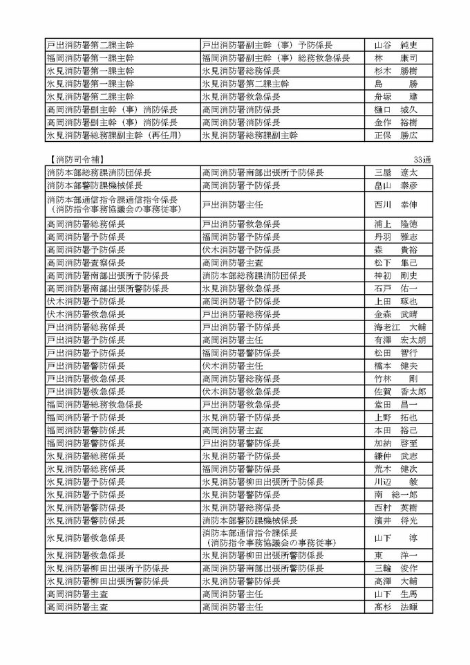 ニュースクリップ 高岡市職員 人事異動 2025(4月1日発令)【異動名簿・掲載】部長級 6人昇任 うち女性は部長級に1人、ほか次長級に1人、課長級に3人が昇任 2025年3月27日(木) 19:10 国内 暮らし・マネー 消防本部 高岡市職員人事2025