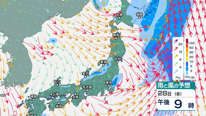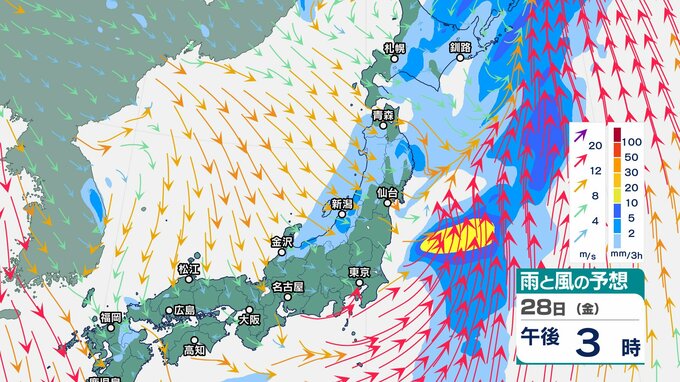 ニュースクリップ 【寒の戻り】日本海側の広い範囲で雪か雨…29日30日は冷え込み厳しく“冬に逆戻り” 【雨と風 シミュレーション】関東は “冷たい雨” で厳しい冷え込み 2025年3月28日(金) 14:10 国内 天気 28日(金)雨と風のシミュレーション