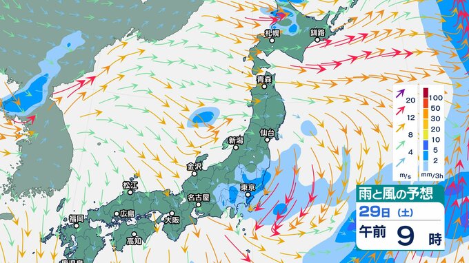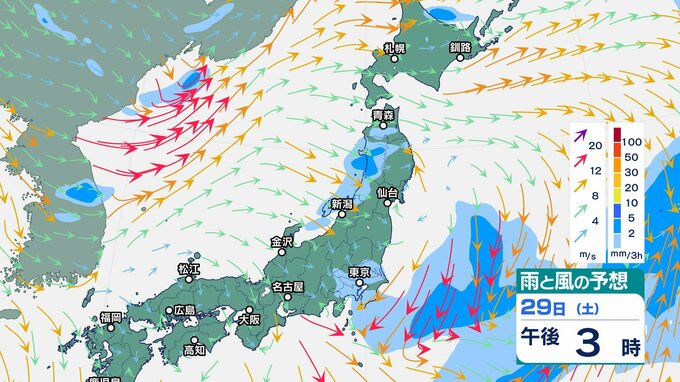 ニュースクリップ 【寒の戻り】日本海側の広い範囲で雪か雨…29日30日は冷え込み厳しく“冬に逆戻り” 【雨と風 シミュレーション】関東は “冷たい雨” で厳しい冷え込み 2025年3月28日(金) 14:10 国内 天気 29日(土)雨と風のシミュレーション