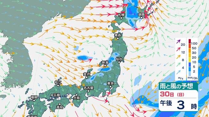 ニュースクリップ 【寒の戻り】日本海側の広い範囲で雪か雨…29日30日は冷え込み厳しく“冬に逆戻り” 【雨と風 シミュレーション】関東は “冷たい雨” で厳しい冷え込み 2025年3月28日(金) 14:10 国内 天気 30日(日)雨と風のシミュレーション