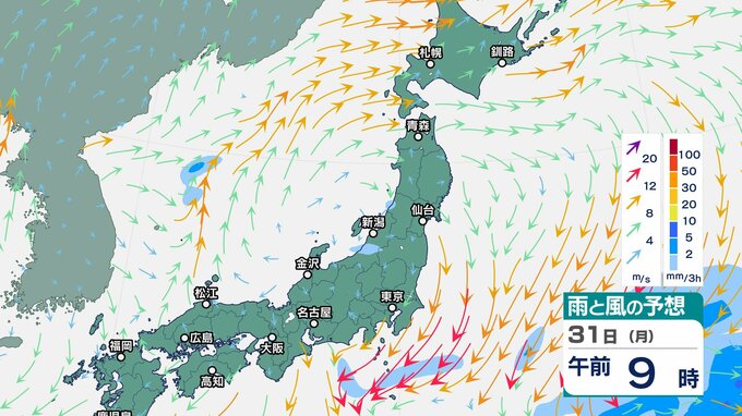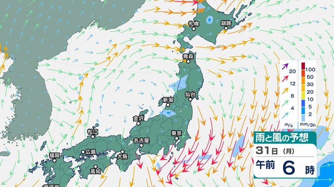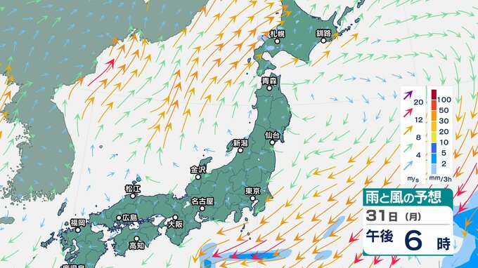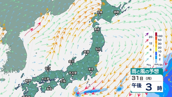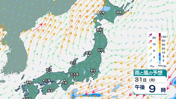 ニュースクリップ 【寒の戻り】日本海側の広い範囲で雪か雨…29日30日は冷え込み厳しく“冬に逆戻り” 【雨と風 シミュレーション】関東は “冷たい雨” で厳しい冷え込み 2025年3月28日(金) 14:10 国内 天気 31日(月)雨と風のシミュレーション