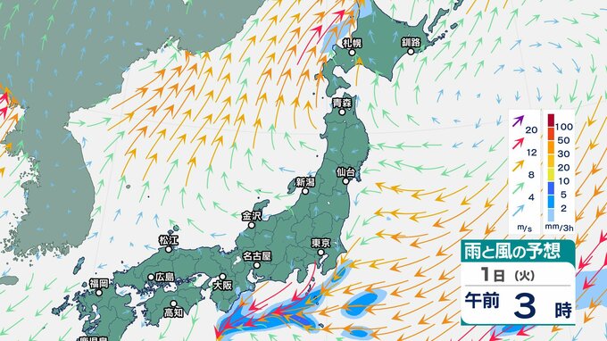ニュースクリップ 【寒の戻り】日本海側の広い範囲で雪か雨…29日30日は冷え込み厳しく“冬に逆戻り” 【雨と風 シミュレーション】関東は “冷たい雨” で厳しい冷え込み 2025年3月28日(金) 14:10 国内 天気 1日(火)雨と風のシミュレーション