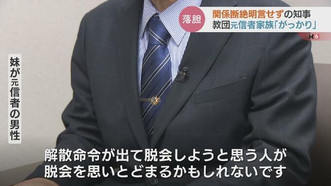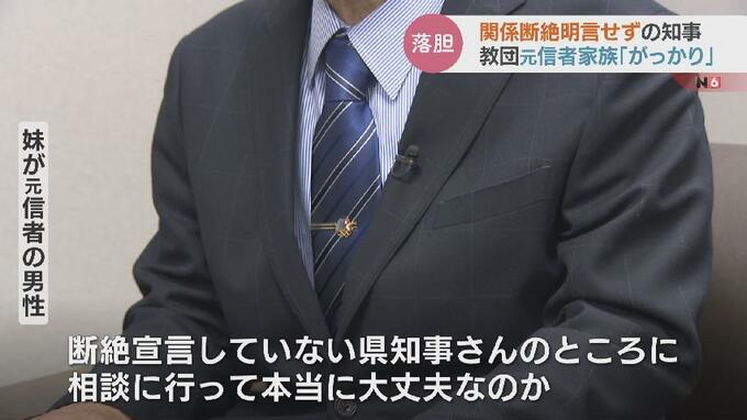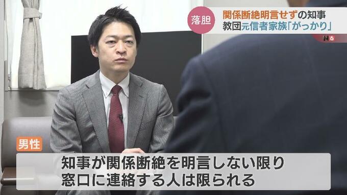 新田知事は今後、高額献金などの被害者の救済に力を入れていく考えを示し、2022年10月には県として電話相談窓口を設置したと述べました。しかし、男性は知事が関係断絶を明言しない限り、窓口に連絡する人は限られると話しました。
