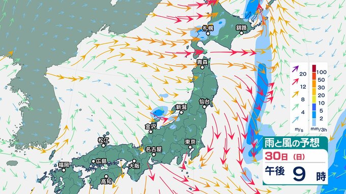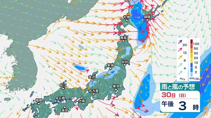 ニュースクリップ 北陸から東北の日本海側…30日にかけ所々で雨や雪 関東は冷たい雨 降ったりやんだり【雨と風のシミュレーション】日差し届くも空気はヒンヤリ 2025年3月29日(土) 13:00 国内 天気 30日(日)雨と風のシミュレーション