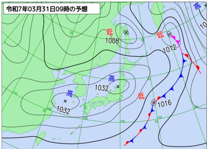 週明け月曜(31日)の朝は全国的に冷え込む見込みで西日本を中心に広い範囲で霜注意報が発表されています。3月最終日ですがコートや手袋が欲しくなるくらいの朝となる見込みです。4月に入る火曜から気温は徐々に上がります。次の週末はようやく春本番の陽気の地域が多くなる見込みです。