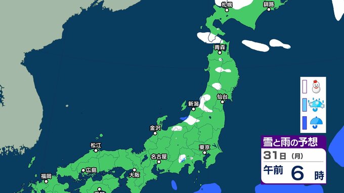 ニュースクリップ 寒さいつまで? 週明け31日朝も “霜が降りるほど” …新年度スタート1日も “通勤は冬コートか…”【雪と雨のシミュレーション 3時間ごと】 2025年3月30日(日) 22:54 国内 31日(月)雪と雨のシミュレーション