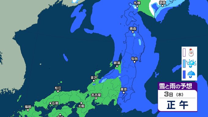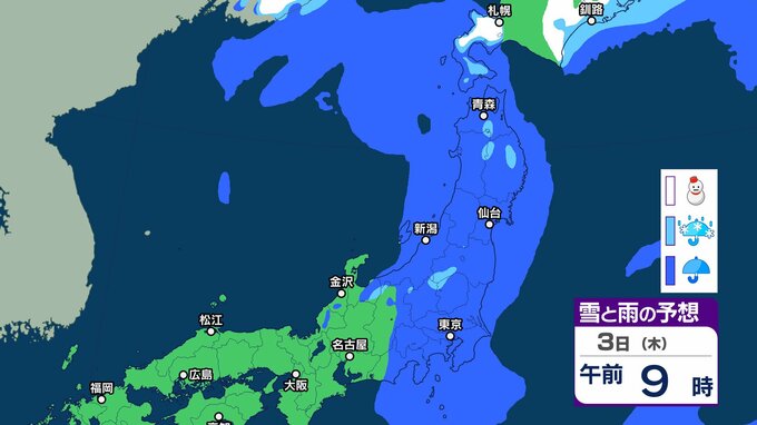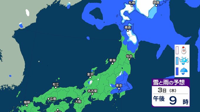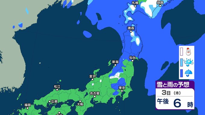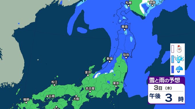 ニュースクリップ 寒さいつまで? 週明け31日朝も “霜が降りるほど” …新年度スタート1日も “通勤は冬コートか…”【雪と雨のシミュレーション 3時間ごと】 2025年3月30日(日) 22:54 国内 1日(火)雪と雨のシミュレーション 2日(水)雪と雨のシミュレーション 3日(木)雪と雨のシミュレーション