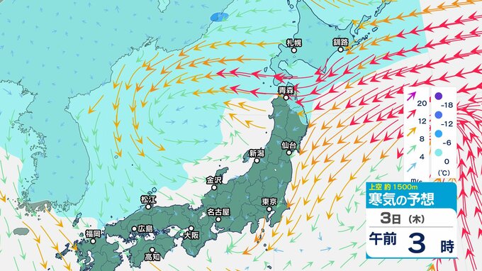ニュースクリップ 大雪いつまで?関東甲信の山沿いや山地、平地でも積雪か…1日夕方にかけて積雪や路面の凍結による交通障害、着雪に注意【雨、風、寒気のシミュレーション】関東周辺は季節外れの寒さ 2025年3月31日(月) 20:19 国内 天気 3日(木)上空の寒気シミュレーション
