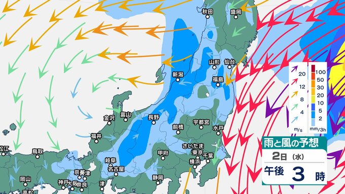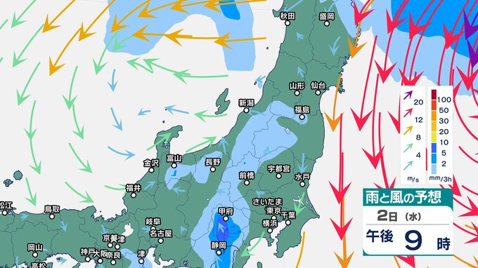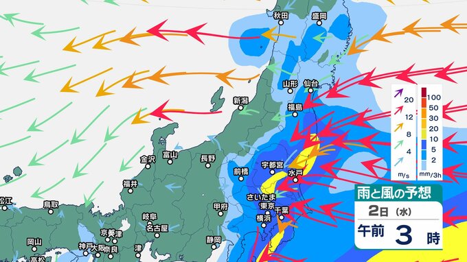 ニュースクリップ 関東甲信 2日明け方にかけ激しい雨のおそれ 伊豆諸島は高波に注意・警戒…前線上の低気圧が発達しながら日本の東へ【雨と風のシミュレーション】大気の状態不安定で関東の海上と伊豆諸島は大しけ 2025年4月1日(火) 17:48 国内 天気 2日(水)雨と風のシミュレーション 3時間ごと